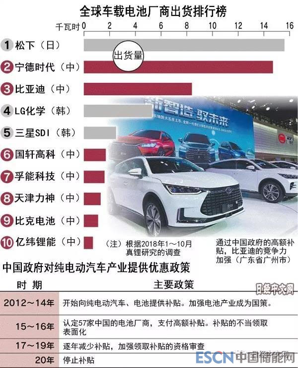“中國(guó)最近的(純電動(dòng)汽車相關(guān))政策向淘汰技術(shù)實(shí)力低下企業(yè)的方向轉(zhuǎn)變。必須在(2020年的)補(bǔ)貼制度取消之前進(jìn)一步提高競(jìng)爭(zhēng)力”,一名比亞迪的高管透露出危機(jī)感。比亞迪在全球車載電池市場(chǎng)上份額排在第3。