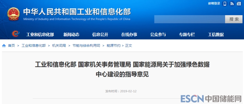 中國儲能網(wǎng)訊:據(jù)工信部網(wǎng)站2月12日消息,工信部、國家機(jī)關(guān)事務(wù)管理局、國家能源局近日聯(lián)合印發(fā)《關(guān)于加強(qiáng)綠色數(shù)據(jù)中心建設(shè)的指導(dǎo)意見》(以下簡稱意見),明確提出要建立健全綠色數(shù)據(jù)中心標(biāo)準(zhǔn)評價(jià)體系和能源資源監(jiān)管體系,打造一批綠色數(shù)據(jù)中心先進(jìn)典型,形成一批具有創(chuàng)新性的綠色技術(shù)產(chǎn)品、解決方案,培育一批專業(yè)第三方綠色服務(wù)機(jī)構(gòu)。到2022年,數(shù)據(jù)中心平均能耗基本達(dá)到國際先進(jìn)水平,新建大型、超大型數(shù)據(jù)中心的電能使用效率值達(dá)到1.4以下,高能耗老舊設(shè)備基本淘汰,水資源利用效率和清潔能源應(yīng)用比例大幅提升,廢舊電器電子產(chǎn)品得到有效回收利用。