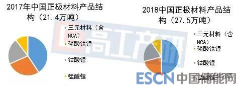 從占比來(lái)看NCM占比最高,2018年達(dá)到49.7%,同比2017年提升了9個(gè)百分點(diǎn),三元材料在動(dòng)力電池、數(shù)碼電池、小動(dòng)力電池等領(lǐng)域大比例應(yīng)用。