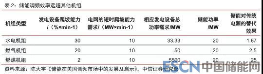 頻率的變化會對發(fā)電及用電設(shè)備的安全高效運行及壽命產(chǎn)生影響,因此頻率調(diào)節(jié)至關(guān)重要。在傳統(tǒng)能源結(jié)構(gòu)中,電網(wǎng)短時間內(nèi)的能量不平衡是由傳統(tǒng)機組(在我國主要是火電和水電)通過響應(yīng)AGC信號來進行調(diào)節(jié)的。而隨著新能源的并網(wǎng),風(fēng)光的波動性和隨機性使得電網(wǎng)短時間內(nèi)的能量不平衡加劇,傳統(tǒng)能源(特別是火電)由于調(diào)頻速度慢,在響應(yīng)電網(wǎng)調(diào)度指令時具有滯后性,有時會出現(xiàn)反向調(diào)節(jié)之類的錯誤動作,因此不能滿足新增的需求。相較而言,儲能(特別是電化學(xué)儲能)調(diào)頻速度快,電池可以靈活地在充放電狀態(tài)之間轉(zhuǎn)換,成為非常好的調(diào)頻資源。