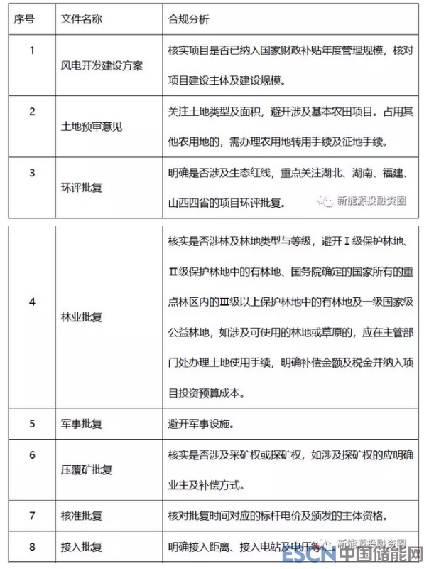 項目的支撐性文件是合規(guī)分析的切入口,想必大家都熟悉風(fēng)電項目須取得的合規(guī)文件,小編就不一一贅述了(如需可參考本公眾號“一表讀懂風(fēng)電項目手續(xù)文件及獲取部門”一文)。對合規(guī)文件的分析主要關(guān)注三點,一為文件是否過期,二為頒發(fā)主體是否有資格,三為文件披露的關(guān)鍵信息。簡單列舉幾項文件的合規(guī)分析。