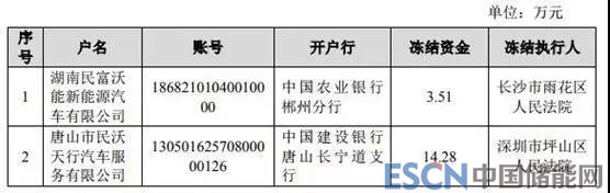 日前,堅(jiān)瑞沃能(300116)公告顯示,旗下全資子公司沃特瑪?shù)南聦僮庸久滦略?個(gè)銀行賬戶被凍結(jié),本次涉及凍結(jié)金額為17.79萬(wàn)元。