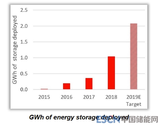 這兩個(gè)趨勢(shì)都很明顯。特斯拉公司在2018年第四季度部署了255MWh儲(chǔ)能系統(tǒng),全年達(dá)到1,040MWh,其中包括在澳大利亞部署世界上最大的鋰離子電池儲(chǔ)能系統(tǒng)。這比2017年部署增長了近3倍。