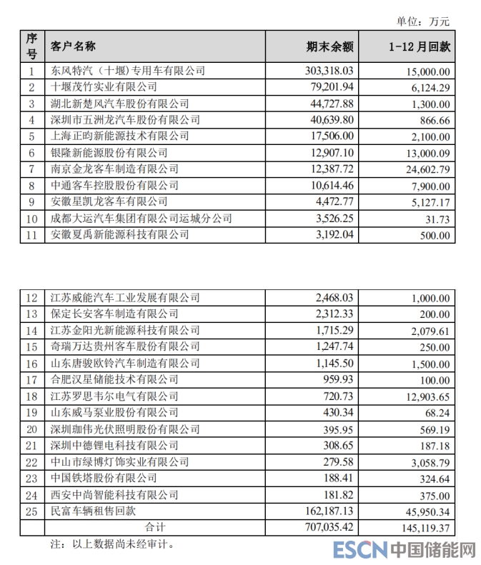根據(jù)堅瑞沃能公布的125.33億元應收債權數(shù)據(jù),其中應收賬款占比最高,為89.67億元,不乏來自東風特汽、深圳五洲龍、銀隆新能源、南京金龍、中通客車等知名企業(yè)(具體數(shù)據(jù)見下圖):