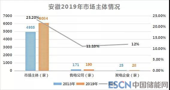 截止2019年2月,安徽電力市場(chǎng)準(zhǔn)入的市場(chǎng)主體已增至6084家電力用戶(hù),其中包括190家售電公司和28家發(fā)電企業(yè)。與2018年的4935家電力用戶(hù)、171家售電公司和25家發(fā)電企業(yè)相比,新增了電力用戶(hù)1149家、新增售電公司21家、新增發(fā)電企業(yè)3家。市場(chǎng)主體總數(shù)量同比增長(zhǎng)23%,售電公司數(shù)量同比增長(zhǎng)11.1%,發(fā)電企業(yè)同比2017年增長(zhǎng)12%。