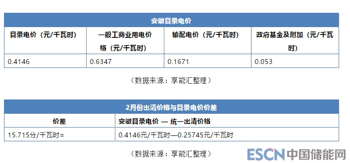 按照目錄電價(jià)為基礎(chǔ)計(jì)算,安徽2月份集中交易價(jià)差將達(dá)到15.715分/千瓦時(shí)。