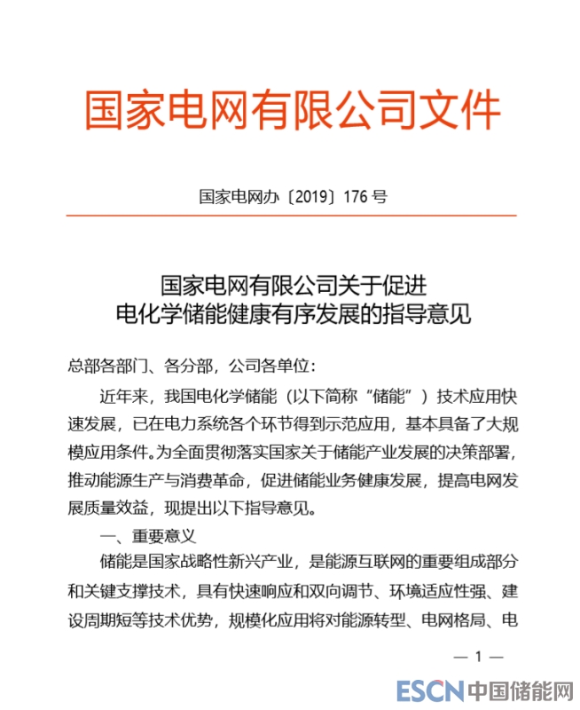 國家電網(wǎng)有限公司關(guān)于促進電化學(xué)儲能健康有序發(fā)展的指導(dǎo)意見