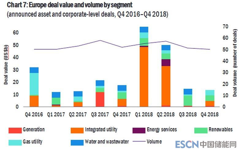 根據(jù)安永全球電力和公用事業(yè)交易咨詢負責(zé)人Miles Huq解釋,2018年歐洲P&U交易達到了1265億美元,是“歐洲并購交易突出的年份”。其中,最重要的交易是意昂集團以466億美元收購Innogy。