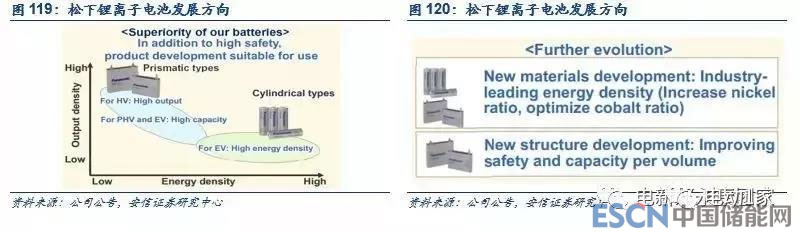 松下:松下的動(dòng)力電池未來(lái)發(fā)展方向主要分為兩大類,方形電池主要應(yīng)用于高功率輸出的HV和PHEV領(lǐng)域,圓柱電池主要應(yīng)用于高能量密度的EV領(lǐng)域。并且會(huì)通過(guò)進(jìn)一步優(yōu)化鎳鈷含量比例,開發(fā)繼續(xù)引領(lǐng)高能量密度優(yōu)勢(shì)的新型材料。發(fā)展新的結(jié)構(gòu)電池單體以提高其安全性和容量。