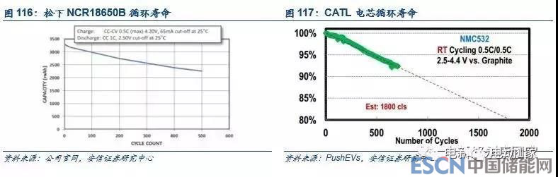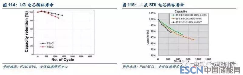 LG化學(xué)具有較好的循環(huán)壽命,能到達(dá)到2000次循環(huán),三星SDI的動(dòng)力電池循環(huán)壽命可以達(dá)到1500次,松下的18650電芯循環(huán)壽命約500-1000次。