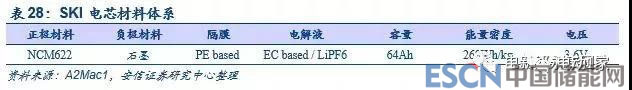 SKI電池:SKI目前的軟包電池正極材料主要為NCM622為主,在2019年應(yīng)該發(fā)展為NCM811混合體系,2020年發(fā)展為100%比例的NCM811體系,2021年以后預(yù)計(jì)Ni的含量將達(dá)90%。負(fù)極材料目前采用石墨,預(yù)計(jì)2021年后采用硅碳負(fù)極。