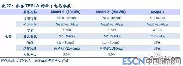 松下電池:松下目前的圓柱形動(dòng)力電池主要為NCA+硅碳負(fù)極的化學(xué)體系。根據(jù)A2Mac1實(shí)測(cè)數(shù)據(jù),特斯拉采用的松下圓柱形電池型號(hào)從Model S、Model X的18650逐步過(guò)渡到Model 3的21700,NCA正極材料配比由Ni:Co:Al=0.82:0.15:0.03升級(jí)為Ni:Co:Al=0.9:0.05:0.05,鎳的含量進(jìn)一步得到提升,鈷的含量降至0.05%,極大地降低了電池的原材料成本,領(lǐng)先于NCM的811化學(xué)體系。