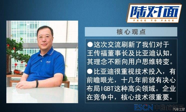老陸有話說:在與王傳福交流之前,我對于比亞迪,或者說王傳福本人的理解,主要是技術(shù)為王、工程師思維等,在深入交流后發(fā)現(xiàn),這些關(guān)鍵詞正逐漸向“變革”“用戶導(dǎo)向”等延伸。我認(rèn)為,一個(gè)企業(yè)要想做好主要看三方面,第一是經(jīng)營,第二是創(chuàng)新和變革,第三是管理,三足鼎立,缺一不可,從比亞迪來說,其近年來無論是管理還是經(jīng)營都取得了不錯(cuò)的進(jìn)步,汽車之家也希望利用自身的大數(shù)據(jù)、論壇等平臺,去幫助消費(fèi)者、幫助主機(jī)廠,做好橋梁紐帶作用。我們也期待中國品牌的未來會(huì)越來越好,汽車之家也將會(huì)對其保持持續(xù)關(guān)注。(文/汽車之家 章漣漪 杜俊儀;攝影/汽車之家 耿源)