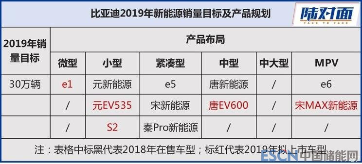 “2019年新能源汽車市場將繼續(xù)呈現(xiàn)爆發(fā)的趨勢,每個(gè)細(xì)分市場都存在機(jī)會(huì)?!蓖鮽鞲;谶@個(gè)判斷,決定今年比亞迪在新能源領(lǐng)域要采取全線開花的戰(zhàn)略,微型、小型、中型和MPV都布局了1-2款新車,并把全年新能源車銷售目標(biāo)定在了30萬輛,企業(yè)整體銷量目標(biāo)為65萬輛,這一數(shù)字相比2018年增長了24.8%。