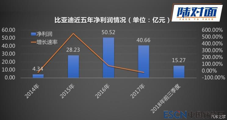 而由于新能源車補(bǔ)貼進(jìn)一步下降等因素,據(jù)業(yè)績預(yù)報(bào),2018年比亞迪全年凈利潤約為27.27億元至31.27億元,比起2017年的40.7億元仍然呈下跌趨勢。當(dāng)補(bǔ)貼“水分”被擠壓的窘境來臨,也便到了真正拼產(chǎn)品、拼服務(wù)的時(shí)候。 營收不斷增長,但利潤卻沒有跟上。2015、2016年是比亞迪凈利潤增幅最大的兩年。隨后,營收的增長并沒有帶來凈利潤的提高。相比2016年,比亞迪2017年的凈利潤下降了近2成。對此,王傳福坦言這是受到新能源補(bǔ)貼政策變化及市場競爭影響。