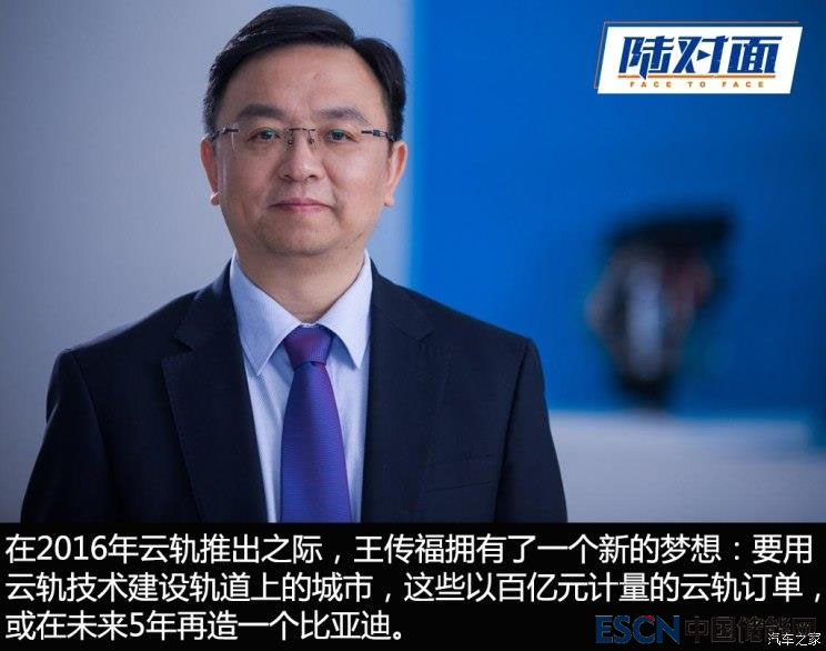 現(xiàn)如今很多人都在暢想未來的城市出行方式,但對于王傳福來說,他的理想已經(jīng)開始付諸實(shí)踐,他和比亞迪即將要做的就是“向天空要空間、為地面做減法”,打造出地上、地面和地下融合發(fā)展的城市立體交通。他希望,未來三年左右時(shí)間,能用電動(dòng)車解決城市的污染問題,用云軌和云巴解決城市的擁堵問題。