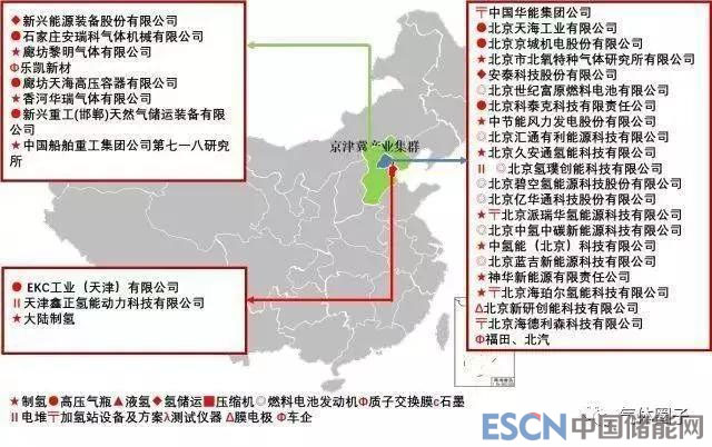 國(guó)內(nèi)氫燃料電池產(chǎn)業(yè)獲得了快速發(fā)展,特別是在汽車領(lǐng)域發(fā)展迅速,帶動(dòng)了區(qū)域產(chǎn)業(yè)集群的形成,形成了京津冀、華東、華南(佛山-云浮)、華中(武漢)四個(gè)氫燃料電池產(chǎn)業(yè)集群,并圍繞當(dāng)?shù)匮邪l(fā)情況及工業(yè)基礎(chǔ)形成了各自的產(chǎn)業(yè)配套及商業(yè)應(yīng)用模式,其地區(qū)和分布如圖 3。
