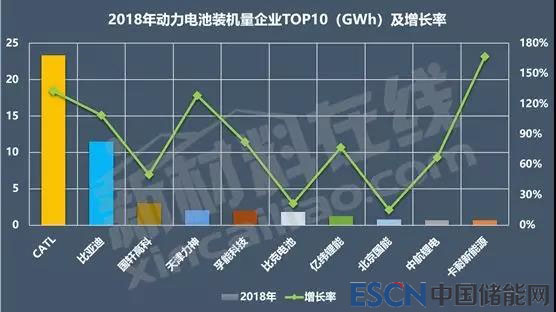從2018年全球動力電池裝機量排名看,動力電池電芯企業(yè)裝機量前三甲依次是寧德時代、比亞迪和國軒高科,2018年全年裝機量分別為23.23GWh、11.46GWh和3.00GWh,同比上一年分別增長了123.37%、111.05%和55.44%,且領先優(yōu)勢進一步鞏固。