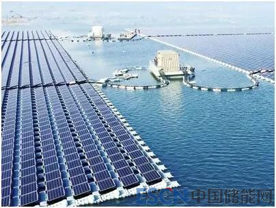 世界上最大的水上光伏電站是在中國的淮南市,建設(shè)在一個廢棄的煤礦上。電站容量為40MW,由12萬塊太陽能組建組成(見下圖),占地面積超過160個足球場,可以為15000戶家庭供電。