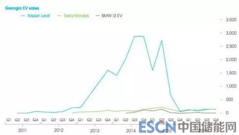 在實施稅收減免政策期間佐治亞州的電動車市場的狀況體現(xiàn)的相對明顯。佐治亞州的電動車銷售取得了巨大成功,其自稱是繼加利福尼亞州之后的美國第二大電動車銷售市場。2014年,該州的電動車銷量占美國所有電動車銷量的17%。驅(qū)動該數(shù)字的因素不僅僅是消費者強烈的環(huán)保意識,也是該州為零排放汽車提供的5000美元稅收減免,此外還有7500美元的美國聯(lián)邦稅收減免。從銷量下降的數(shù)量上看,日產(chǎn)聆風(fēng)受到的影響最大。獎勵也適用于租賃,這使日產(chǎn)每出租一輛聆風(fēng)電動車每月就能獲得132美元的收入。當(dāng)時,日產(chǎn)在佐治亞州交付的聆風(fēng)車型中,有超過80%用于租賃。