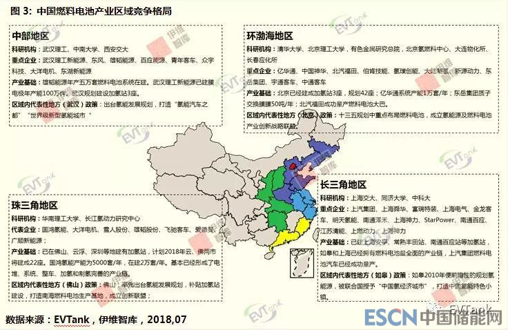 從產(chǎn)業(yè)發(fā)展來(lái)看,EVTank在白皮書中分析認(rèn)為在燃料電池產(chǎn)業(yè),中國(guó)目前已經(jīng)形成了一定的產(chǎn)業(yè)集群和有顯著特色的燃料電池聚集城市。從區(qū)域競(jìng)爭(zhēng)格局來(lái)看,和其他產(chǎn)業(yè)一樣,燃料電池產(chǎn)業(yè)已經(jīng)在環(huán)渤海、長(zhǎng)三角、珠三角等區(qū)域形成了明顯的產(chǎn)業(yè)集群,且在上述區(qū)域基本已經(jīng)形成了完善的燃料電池產(chǎn)業(yè)鏈。但是EVTank分析認(rèn)為,燃料電池的區(qū)域競(jìng)爭(zhēng)格局還存在著與其他產(chǎn)業(yè)不同的地方,首先,以武漢為代表的中西部地區(qū)在燃料電池產(chǎn)業(yè)發(fā)展中搶占了先機(jī),躋身燃料電池產(chǎn)業(yè)發(fā)展第一梯隊(duì);其次,中國(guó)燃料電池產(chǎn)業(yè)的發(fā)展形成了以如皋和佛山為代表的特色燃料電池發(fā)展基地,甚至在某些環(huán)節(jié)發(fā)展勢(shì)頭強(qiáng)過(guò)北京、上海和深圳等經(jīng)濟(jì)發(fā)達(dá)城市。EVTank預(yù)測(cè)未來(lái)中國(guó)燃料電池產(chǎn)業(yè)的發(fā)展有可能重塑傳統(tǒng)的產(chǎn)業(yè)區(qū)域競(jìng)爭(zhēng)格局,更多特色城市有望脫穎而出。