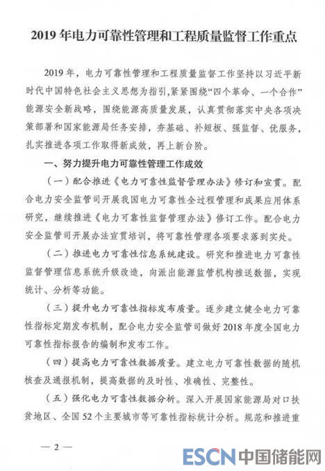 中國(guó)儲(chǔ)能網(wǎng)訊:3月5日,國(guó)家能源局綜合司發(fā)布《關(guān)于印發(fā)2019年電力可靠性管理和工程質(zhì)量監(jiān)督工作重點(diǎn)的通知》(簡(jiǎn)稱《通知》)?!锻ㄖ分赋觯晟齐娏ㄔO(shè)工程質(zhì)量監(jiān)督技術(shù)支撐體系。配合電力安全監(jiān)管司制定GIL綜合管廊工程、海底電力電纜輸電工程、調(diào)相機(jī)工程、柔性直流輸電工程等質(zhì)量監(jiān)督檢查大綱。研究修訂火電、光伏發(fā)電、風(fēng)電、輸變電工程質(zhì)監(jiān)大綱。開展儲(chǔ)能電站等新型電力建設(shè)工程質(zhì)量監(jiān)督研究。