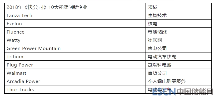 2018年《快公司》10大能源創(chuàng)新企業(yè)