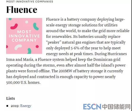 Fluence的入選理由是:提升了電池的市場接受度。