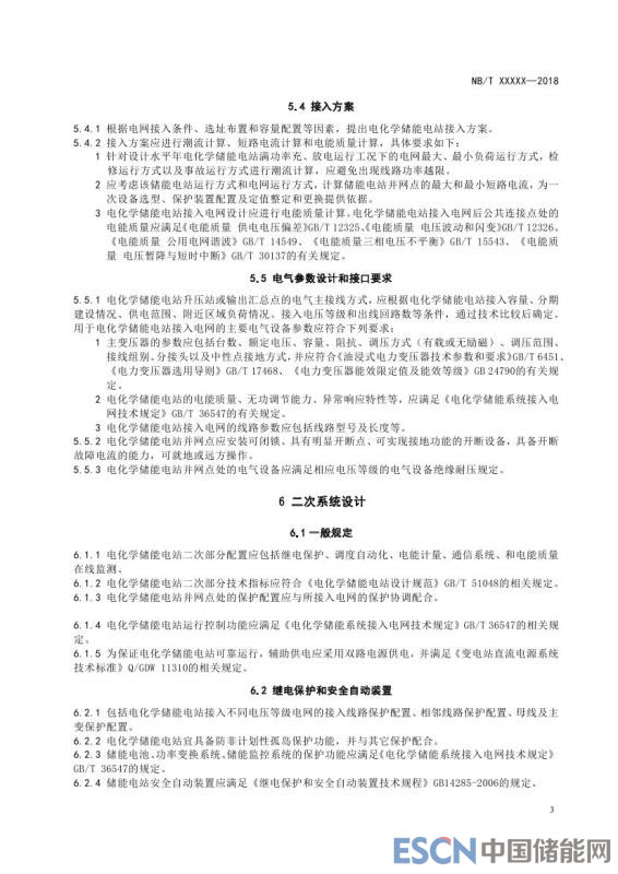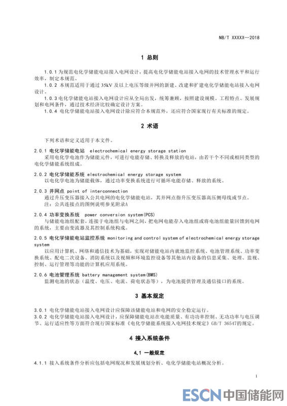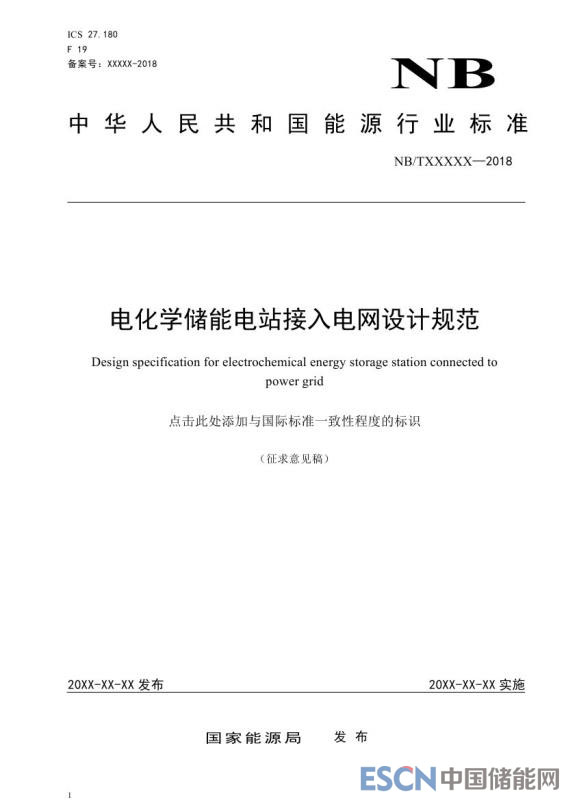 中國儲(chǔ)能網(wǎng)訊:近日,能源行業(yè)標(biāo)準(zhǔn) 《電化學(xué)儲(chǔ)能電站接入電網(wǎng)設(shè)計(jì)規(guī)范》征求意見稿發(fā)布。為規(guī)范電化學(xué)儲(chǔ)能電站接入電網(wǎng)設(shè)計(jì),提高電化學(xué)儲(chǔ)能電站接入電網(wǎng)的技術(shù)管理水平和運(yùn)行效率,制定本規(guī)范。本規(guī)范適用于通過35kV及以上電壓等級并網(wǎng)的新建、改建和擴(kuò)建電化學(xué)儲(chǔ)能電站接入電網(wǎng)設(shè)計(jì)。電化學(xué)儲(chǔ)能電站接入電網(wǎng)設(shè)計(jì)應(yīng)從全局出發(fā),統(tǒng)籌兼顧,按照建設(shè)規(guī)模、工程特點(diǎn)、發(fā)展規(guī)劃和電網(wǎng)條件,通過技術(shù)經(jīng)濟(jì)比較確定設(shè)計(jì)方案。電化學(xué)儲(chǔ)能電站接入電網(wǎng)設(shè)計(jì)除應(yīng)符合本規(guī)范外,還應(yīng)符合國家現(xiàn)行有關(guān)標(biāo)準(zhǔn)的規(guī)定。