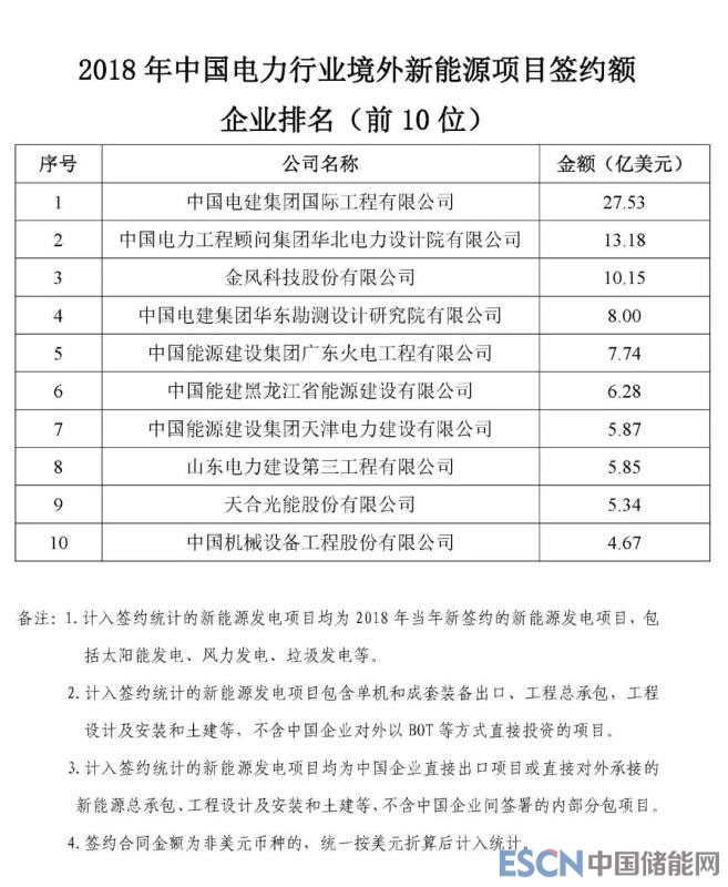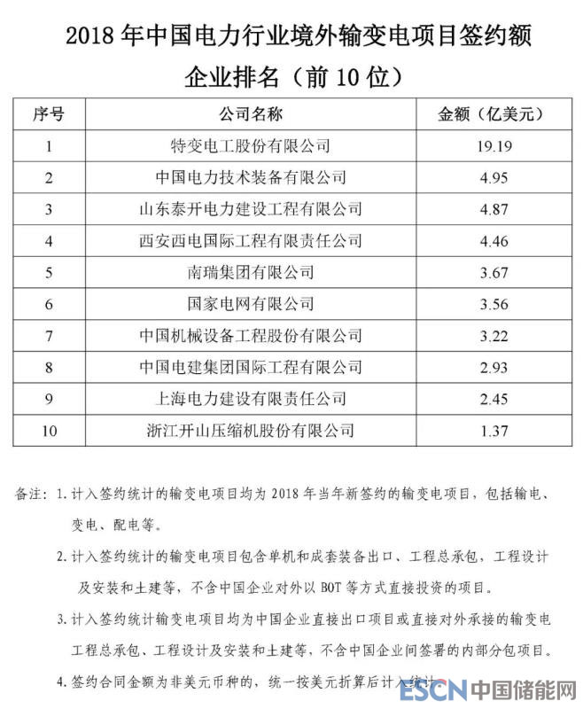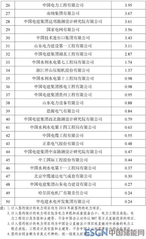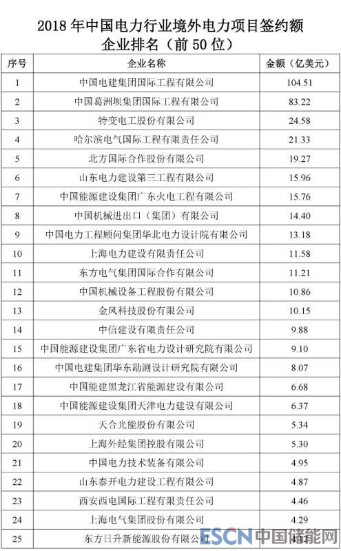 根據(jù)機電商會統(tǒng)計,2018年,中國電力行業(yè)企業(yè)參與境外電力項目投(議)標并最終實現(xiàn)簽約的項目399個,簽約合同總金額466.8億美元,同比增長5.8%,簽約發(fā)電裝機總?cè)萘?013.7萬千瓦。根據(jù)各重點企業(yè)報送的2018年境外電力項目的新簽約情況,機電商會對企業(yè)簽約額進行了排名?,F(xiàn)將排名前50位的企業(yè)名單及各子行業(yè)簽約額排名前10位的企業(yè)名單予以發(fā)布。