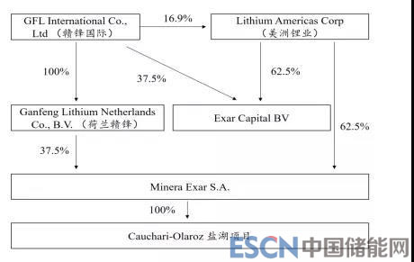 據(jù)了解,荷蘭贛鋒將持有Minera Exar37.5%的股權(quán)。具體投資主體關(guān)系如下: