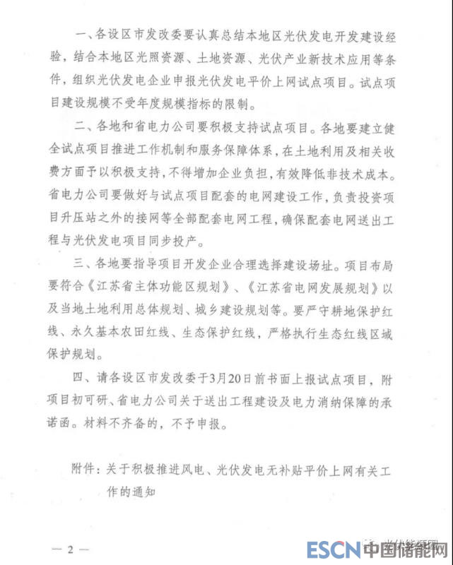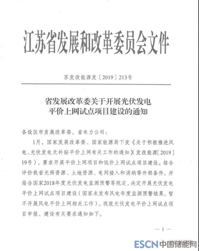 中國儲能網(wǎng)訊:近日,江蘇省相繼發(fā)文啟動光伏電站平價上網(wǎng)項目申報工作,申報時間截止到3月20日。