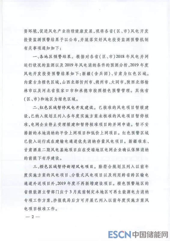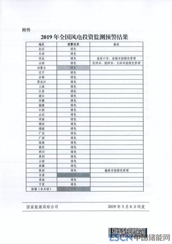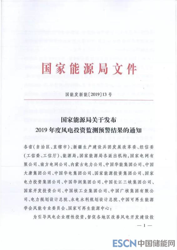 關于發(fā)布2019年度風電投資監(jiān)測預警結果的通知