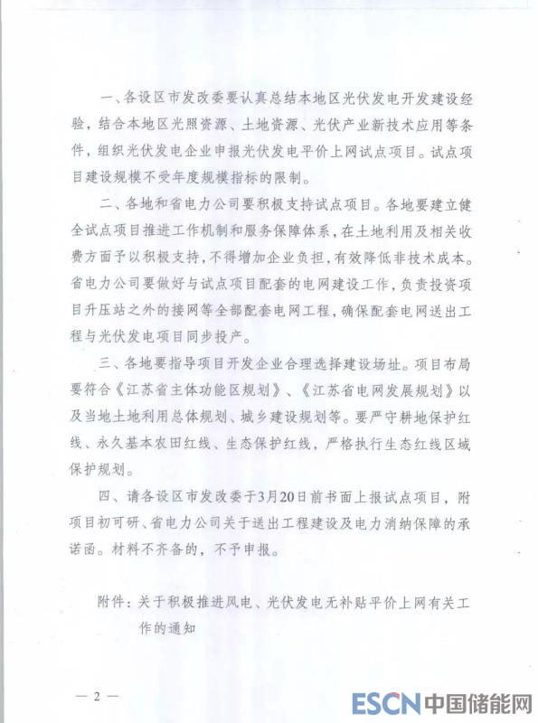 二、江蘇:3月20日前上報(bào)光伏發(fā)電平價(jià)上網(wǎng)試點(diǎn)項(xiàng)目
