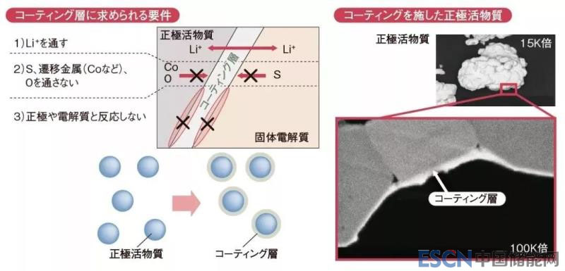 針對這一問題,豐田的對策是對正極活性物質(zhì)進(jìn)行涂覆。通過覆蓋活性材料的周圍,防止形成電阻層。