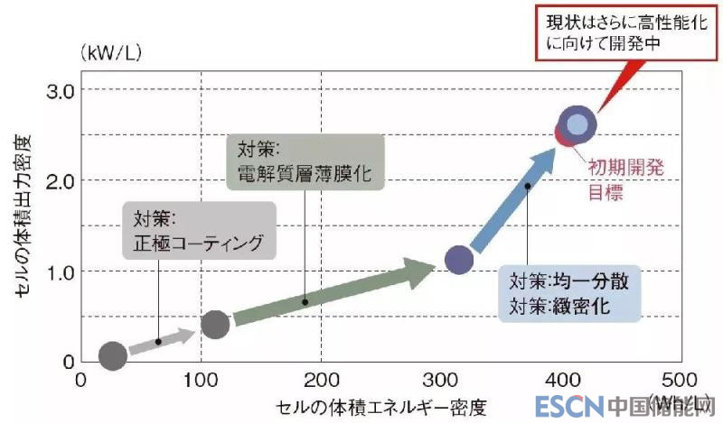 兩者都能造成鋰離子或電子的導(dǎo)電性降低。對此,豐田通過摸索能使活性物質(zhì)均一分散的漿料攪拌方法,以及尋求合適的加壓方法使電極形成致密化。
