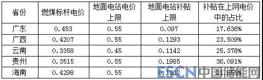 按照最新版征求意見稿對(duì)光伏項(xiàng)目電價(jià)上限的要求,Solarbe索比光伏網(wǎng)統(tǒng)計(jì)了南網(wǎng)覆蓋的五省區(qū)補(bǔ)貼強(qiáng)度: