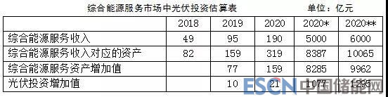 國發(fā)能研院、綠能智庫測算,2020年,綜合能源服務(wù)市場潛力將達(dá)到5000~6000億元。按照國家電網(wǎng)公司這個(gè)實(shí)現(xiàn)路徑,2020年,如果綜合能源服務(wù)市場潛力能完全實(shí)現(xiàn),市場對光伏的投資將達(dá)到1000億元以上。
