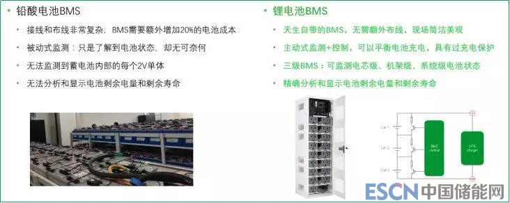 鉛酸電池廠商通常都不生產(chǎn)BMS(電池管理系統(tǒng)),BMS在鉛酸電池時(shí)代屬于一個(gè)豪華配置,只有銀行之類的高端客戶才會(huì)舍得花費(fèi)蓄電池額外10~20%的成本來(lái)加裝BMS,當(dāng)然這對(duì)于用戶實(shí)時(shí)了解鉛酸電池的健康狀況是非常重要的,但缺點(diǎn)是鉛酸電池BMS只能看而不能控制。