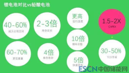 根據(jù)Uptime在2017年所做的全球數(shù)據(jù)中心調(diào)研顯示10%的數(shù)據(jù)中心已經(jīng)采用了鋰電池作為后備能源。施耐德電氣預(yù)計(jì)未來(lái)3年鋰電池的年均增速都將超過(guò)100%。與鉛酸電池相比,鋰電池具有無(wú)可匹敵的技術(shù)優(yōu)勢(shì):