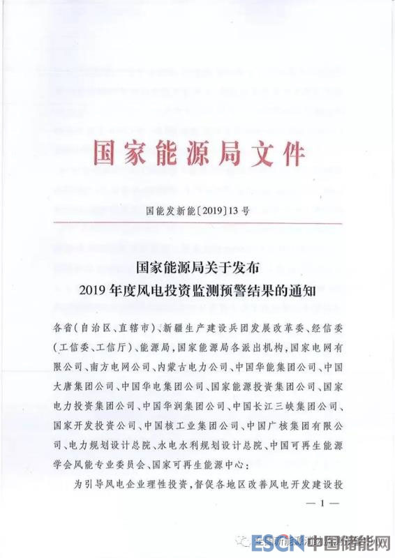 附:國家能源局關(guān)于發(fā)布2019年度風電投資監(jiān)測預(yù)警結(jié)果的通知