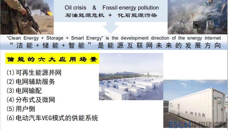 儲能有六大應(yīng)用場景,可再生能源并網(wǎng),電網(wǎng)輔助服務(wù),電網(wǎng)輸配,分布式及微網(wǎng),用戶側(cè),以及一個(gè)非常特殊的用戶側(cè):電動汽車VEG模式的供能系統(tǒng)。儲能應(yīng)用場景很多,大致可以分類儲能的三大作用:第一,平滑間歇性電源功率波動,這樣的場景需要功率型儲能技術(shù);第二,減小峰谷差,提高電力系統(tǒng)效率和設(shè)備利用率,這種場景下大部分需要容量型儲能技術(shù);第三,增加備用容量,提高電網(wǎng)安全穩(wěn)定性和供電質(zhì)量,這個(gè)需要的是UPS備用型的儲能技術(shù)。當(dāng)然還有第四類復(fù)合型的應(yīng)用,尤其是電網(wǎng)側(cè)應(yīng)用,參與調(diào)峰調(diào)頻和緊急備用,我們稱它為復(fù)合型或者是能量型的儲能技術(shù)。所以說,儲能的應(yīng)用場景是多元的。