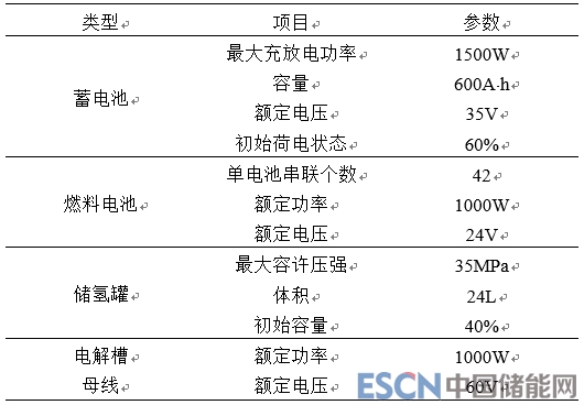 蓄電池、燃料電池、儲(chǔ)氫罐及電解槽具體參數(shù)如表2所示。
