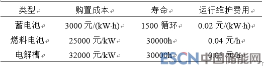 本文采用的蓄電池、燃料電池及電解槽的購(gòu)置成本[32]如表1所示。