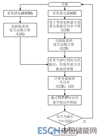 結(jié)合式(25)—(29),計(jì)算出該時(shí)刻下蓄電池、燃料電池及電解槽的功率,將其作為指令傳遞至變流器層進(jìn)行實(shí)際控制。如圖5所示,為頂層能量管理系統(tǒng)工作流程示意圖。