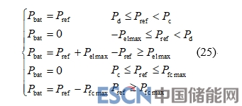 根據(jù)計(jì)算得到的蓄電池輸出功率Pbat,將負(fù)載需求功率與其相減即可得到電解槽及燃料電池參考功率。
