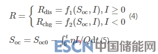 本文采用RINT模型[27]作為蓄電池的數(shù)學(xué)模型,RINT模型中各項(xiàng)參數(shù)受蓄電池荷電狀態(tài)、充放電電流影響,其模型公式為