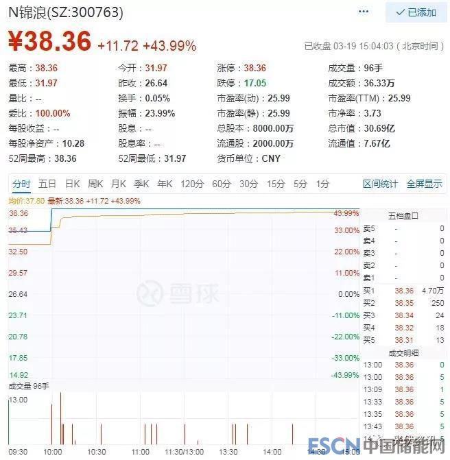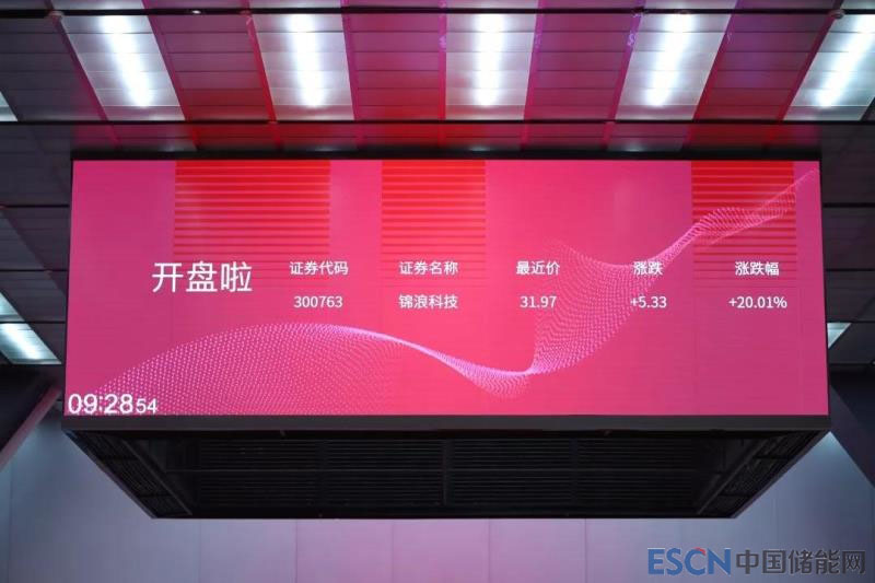 中國(guó)儲(chǔ)能網(wǎng)訊:2019年3月19日,寧波錦浪新能源科技股份有限公司上市掛牌儀式在深圳證券交易所舉行,股票簡(jiǎn)稱“錦浪科技”,股票代碼“300763”,保薦機(jī)構(gòu)和主承銷(xiāo)商為海通證券股份有限公司。本次發(fā)行股票數(shù)量2,000萬(wàn)股,發(fā)行價(jià)格26.64元/股,新股募集資金總額53,280.00萬(wàn)元。