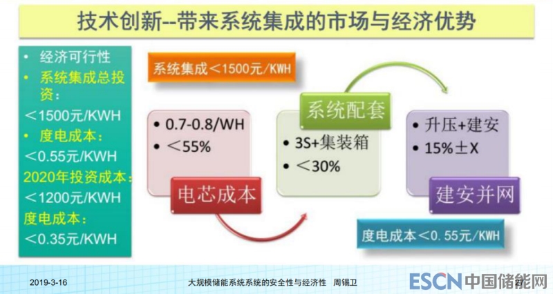 這是價格的曲線,現(xiàn)在商業(yè)價值已經(jīng)到了1.7元到1.5元區(qū)間,整個集裝箱集成完了之后價格不光是電芯的價格,甘肅720兆瓦時國家示范項目控制了160萬,也就是1.6元錢左右,但是這個不作為衡量采購它,它是有特定的環(huán)境示范項目,是保本性的,企業(yè)還要有一些利潤,只是我們做示范探索它的規(guī)?;瘧?yīng)用和它的價值點。
