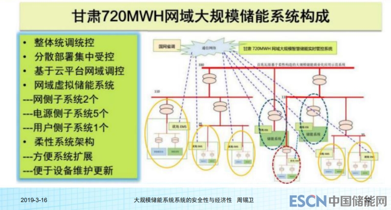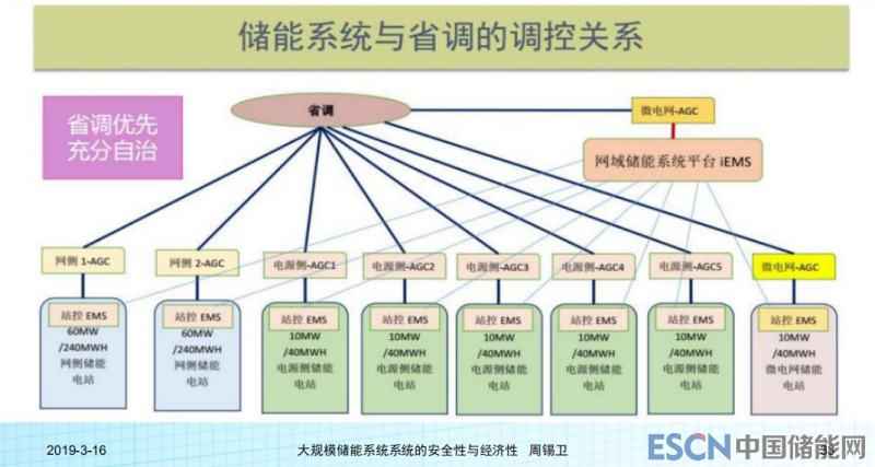 大規(guī)模示范項目,這個項目目前情況5月底的時候可能會有第一個站單體60兆瓦、240兆瓦時的,會整個調(diào)試完成。大概情況有八個子系統(tǒng),有兩個比較大的,都是單體60兆瓦,240兆瓦時,這是整體控制系統(tǒng)的架構(gòu)。